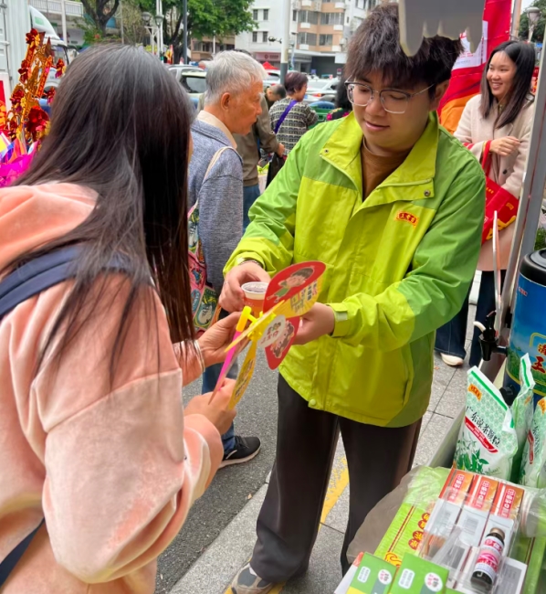 摊位上,王老吉保济口服液、广东凉茶免费试饮活动深受欢迎,工作人员现场讲解肠胃养护知识,结合新年饮食特点讲解,全方位守护大众肠胃健康。此外,摊位还准备了寓意“时来运转”的小风车免费赠送,契合行通济民俗中“携风车祈好运”的传统,同时设置趣味滚滚乐游戏,市民参与即可有机会赢取零食大礼包,引得众多市民驻足参与、踊跃打卡。